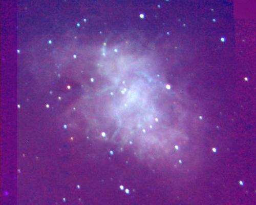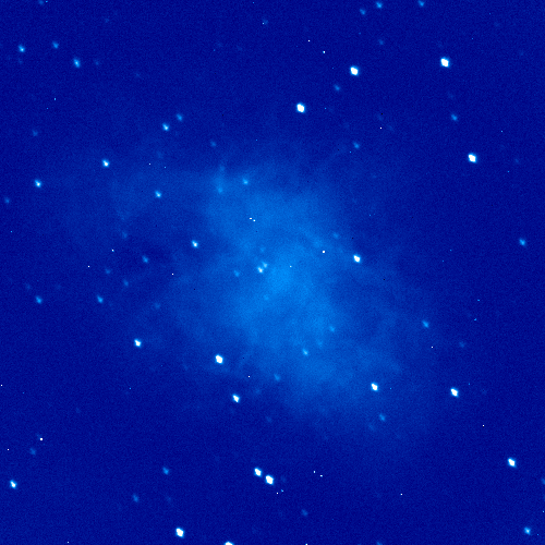 Here is the Ultraviolet image of the Crab nebula, from the image taken by the mysterious 'B1' filter, shown in the blue/linear color table.